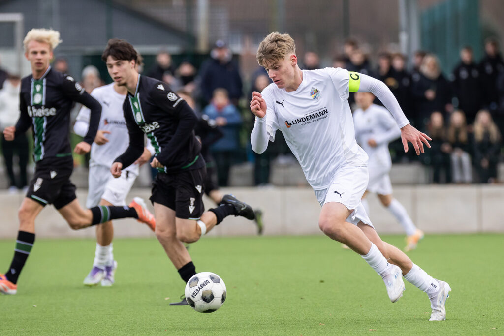 Dabei durften die Gastgeber lange Zeit auf einen weiteren Pokal-Coup hoffen. Gut, die Gäste aus Hannover waren schon im ersten Abschnitt das gefährlichere Team, hatten deutlich mehr Ballbesitz. Doch die starke JFV-Defensive um Keeper Laurin Peschlow – auch einer der großen Pokalhelden vom März – verhinderte immer wieder ein mögliches Gegentor. „Alle Jungs haben, was die Defensivarbeit angeht, heute einen guten Job gemacht“, so Nico Speer, Co-Trainer des JFV.